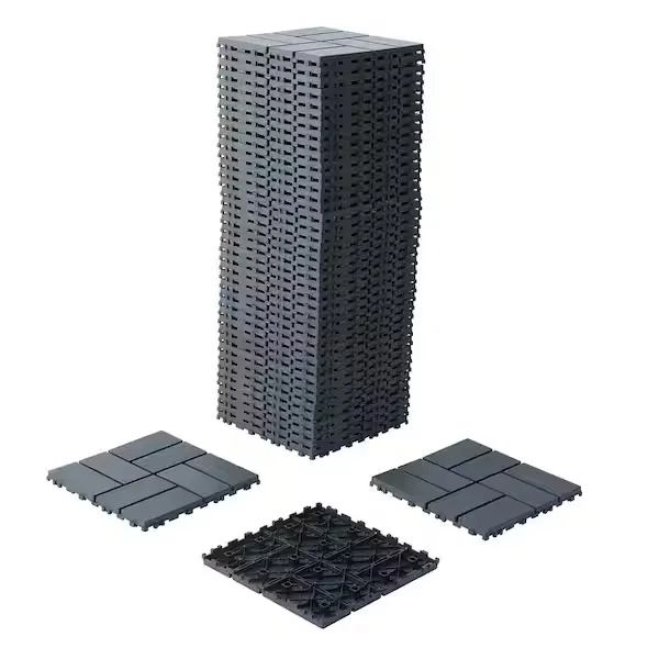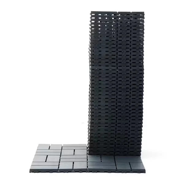 Refresh your indoor or outdoor space with these dark gray checker-pattern plastic interlocking deck tiles. Made from durable PP material, they offer strong load-bearing support, slip resistance, and long-lasting all-weather performance. The snap-together DIY design allows quick, tool-free installation on any flat, solid surface, making them ideal for patios, garages, bathrooms, living rooms, and more.