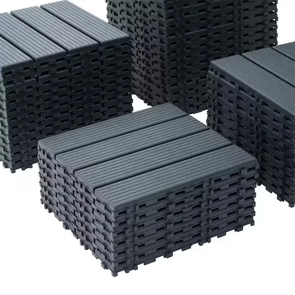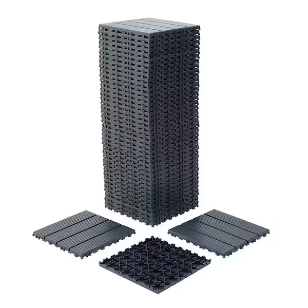 Upgrade your indoor or outdoor space with these dark gray striped plastic interlocking deck tiles. Crafted from durable PP material, they offer strong load-bearing support, slip-resistant performance, and long-lasting all-weather use. The snap-together DIY design allows quick, tool-free installation on any flat, solid surface, making them ideal for patios, gardens, bathrooms, living rooms, or creative interior projects.